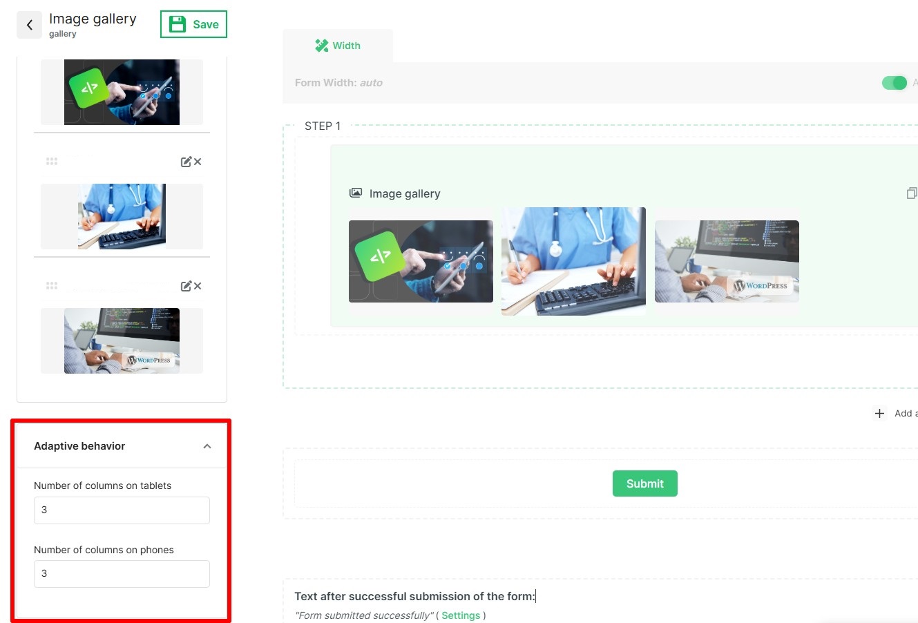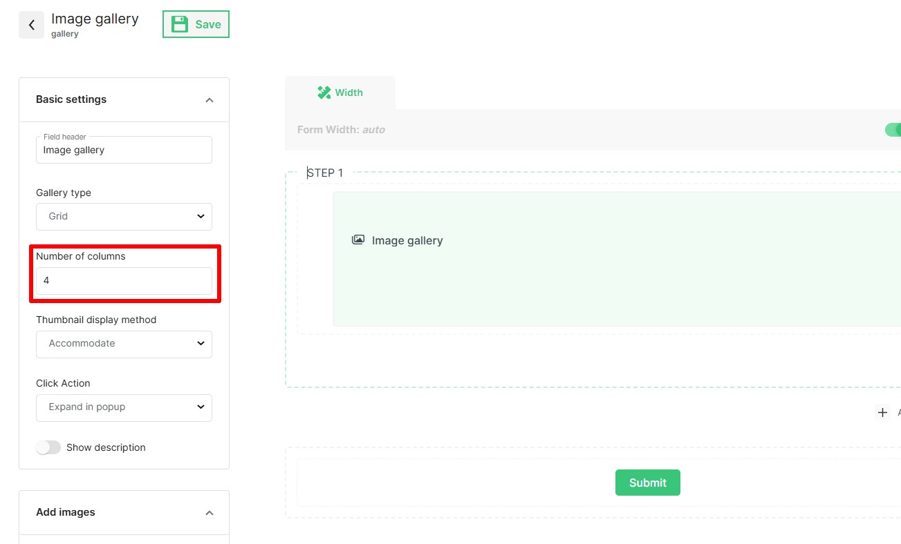 In the settings, specify the required number of columns for embedding images.