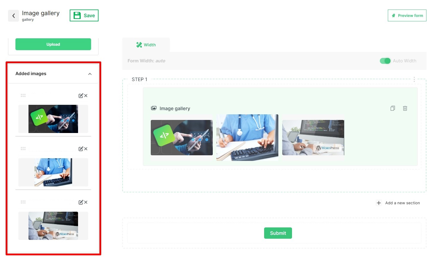 Create a form with a photo gallery