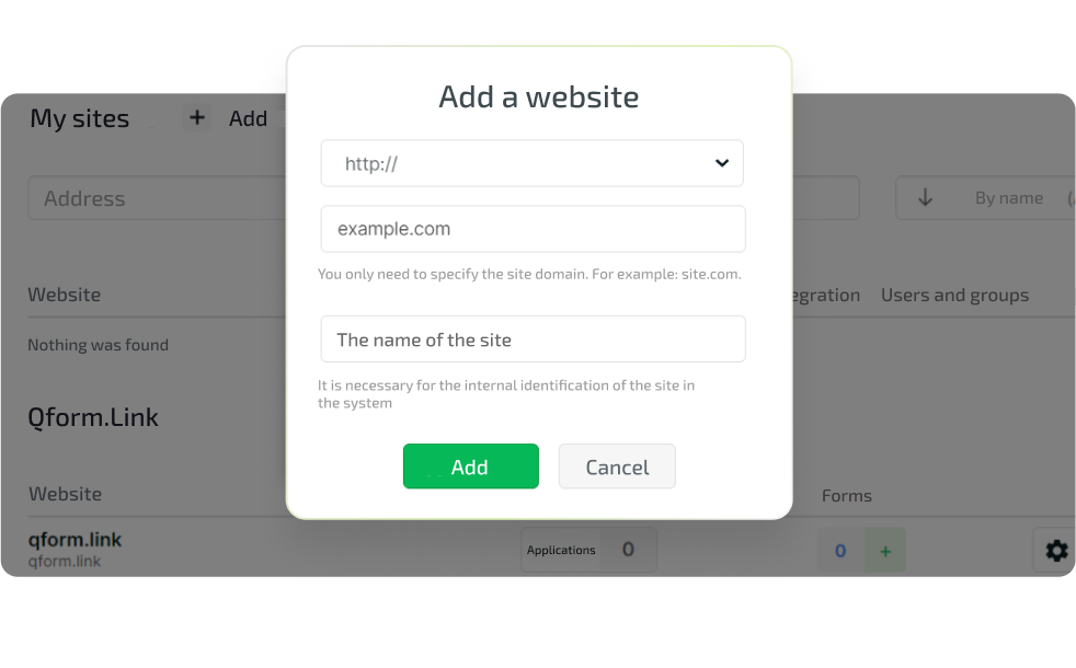 Register on QForm and add your website